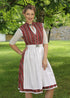 Das Vintage von Goldstich kann durch den hochgeschlossenen Schnitt und die leicht angesetzten Flügelärmel sowohl mit als auch ohne Dirndlbluse getragen werden. Der Stehkragen wirkt sehr elegant und gewährt nur einen kleinen Einblick ins Dekolleté. Durch den glockenförmigen Rock zaubert das Dirndl eine schlanke Silhouette und umschmeichelt perfekt jeden Figurtyp. Die feinen Borten und die ausgewählten Knöpfe verleihen dem Dirndl seinen typischen Vintagelook.